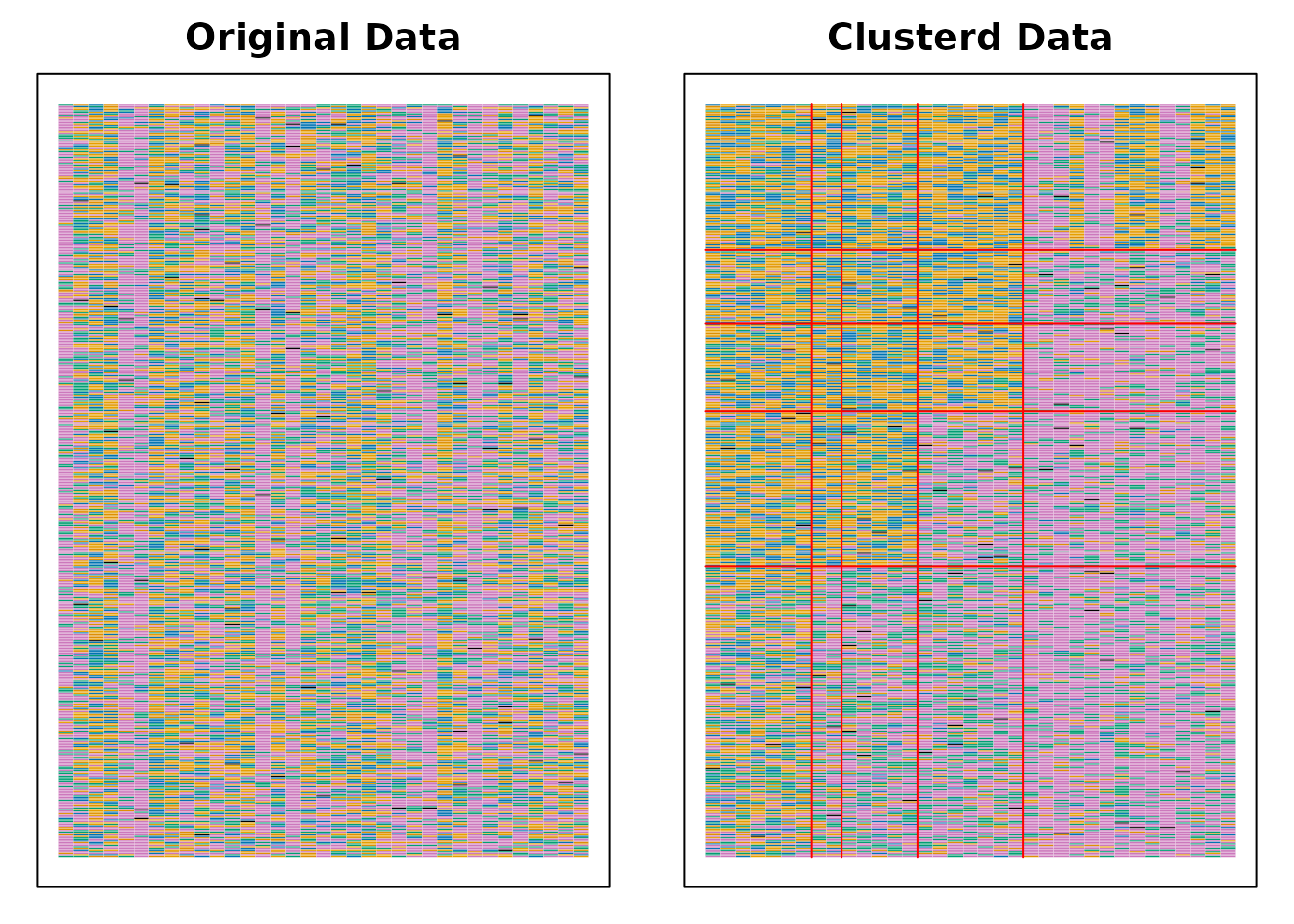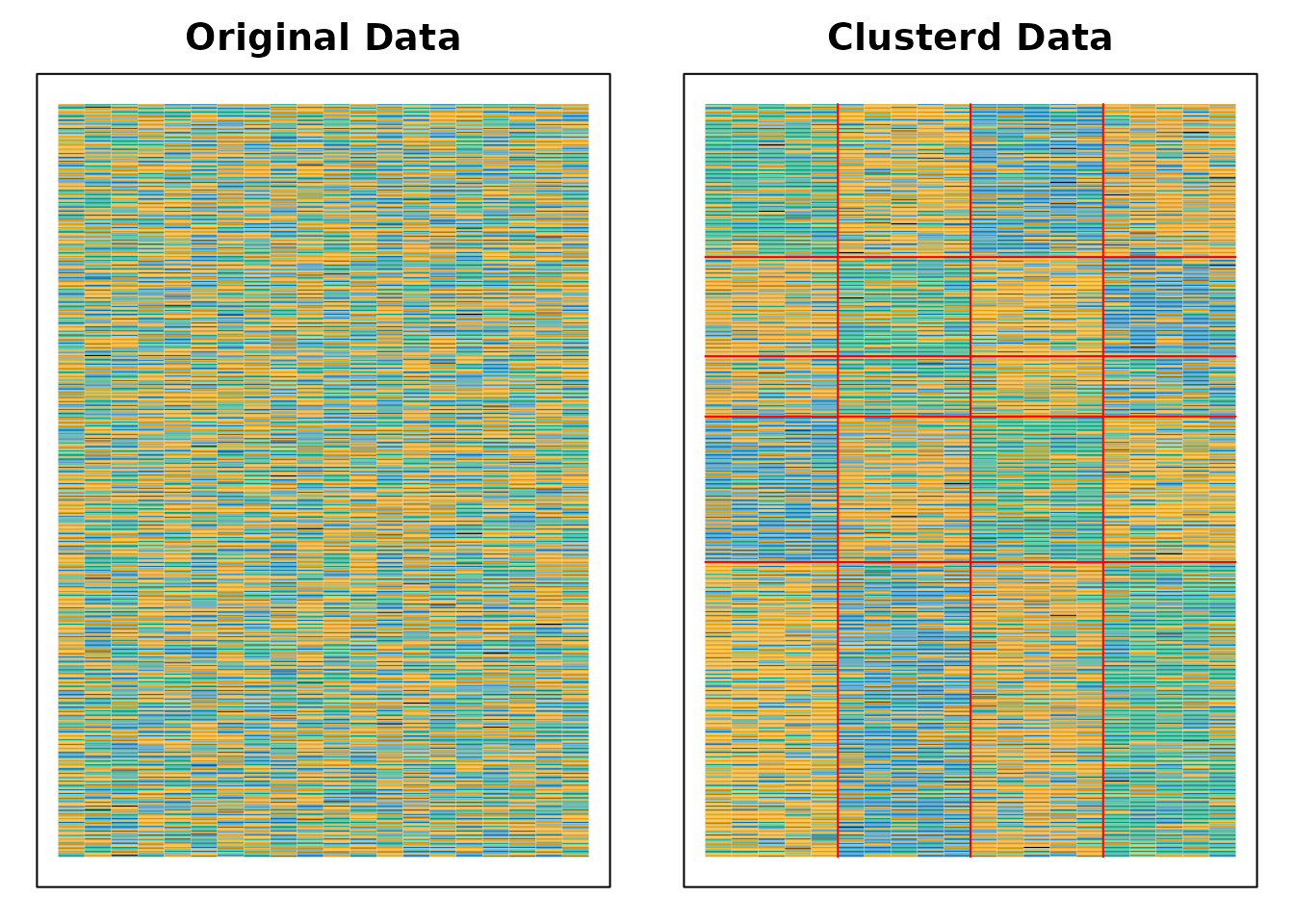 Biclustering(J35S515, nfld = 5, ncls = 6, method = "B")