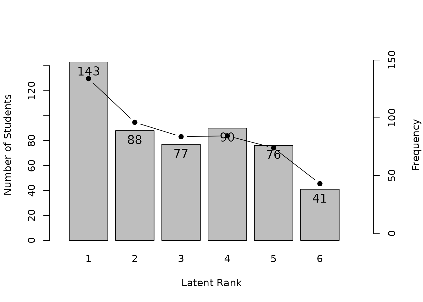 #> Latent Class Ditribution 157.000 64.000 82.000 106.000 89.000 17.000