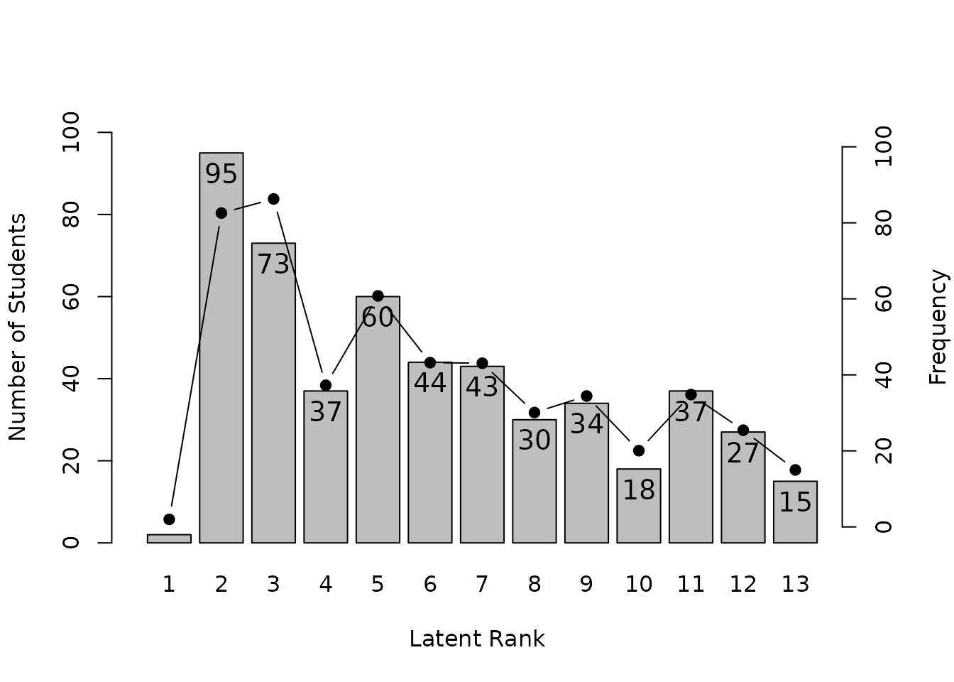 #> Latent Class Ditribution 43.000 30.000 34.000 18.000 37.000