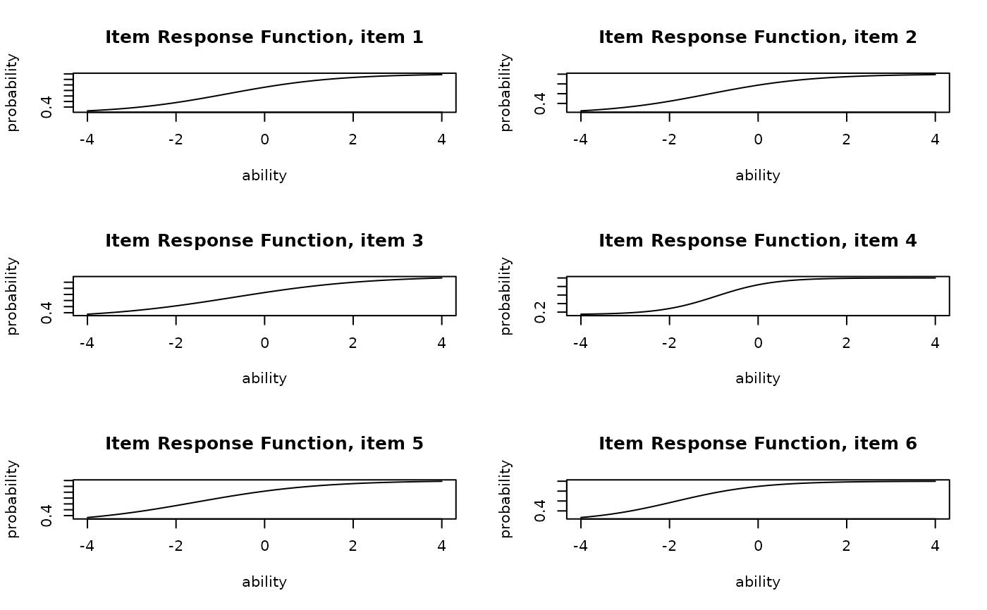 plot(result.IRT, type = "IRF", items = 1:6, nc = 2, nr = 3)