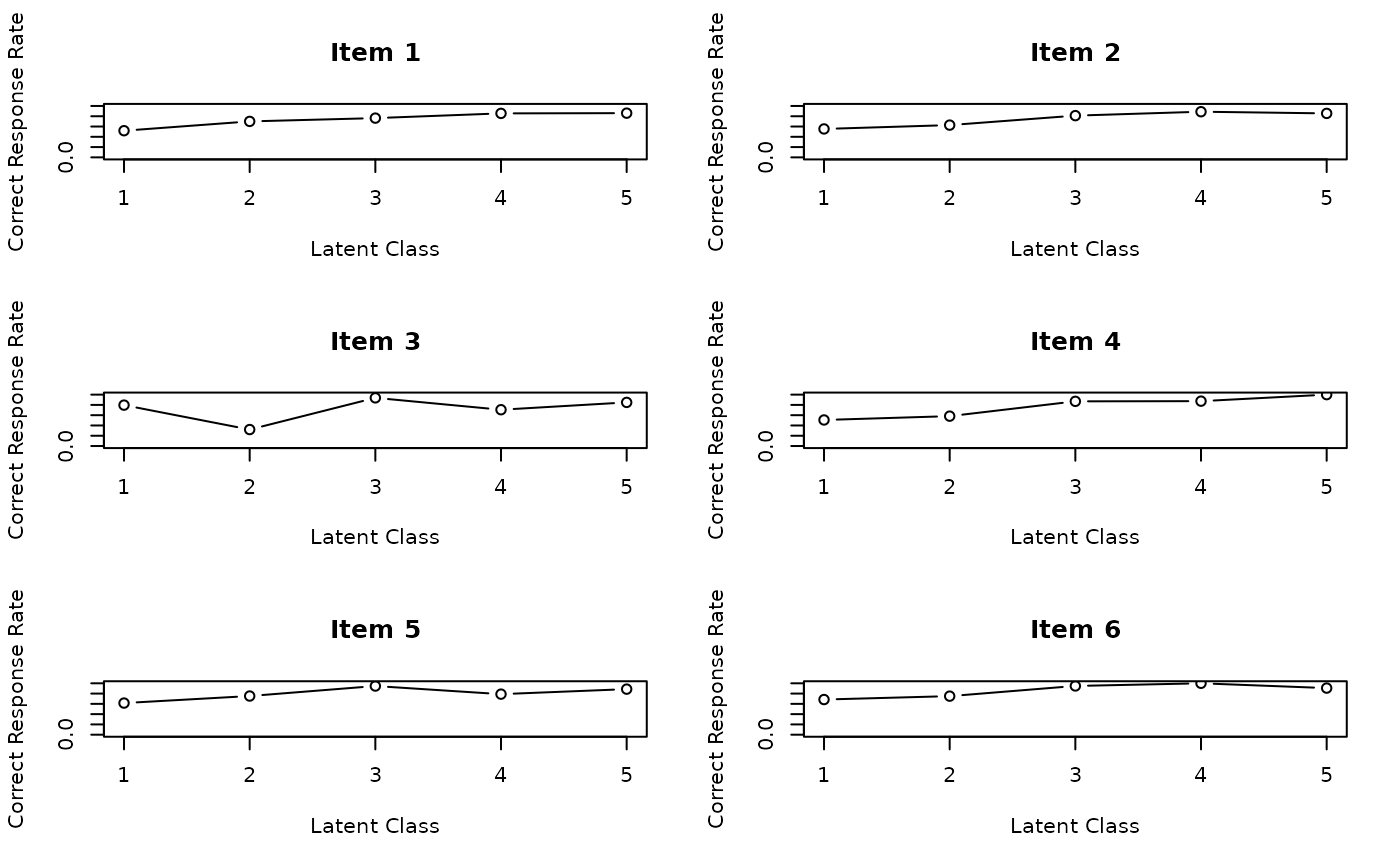 plot(result.LCA, type = "IRP", items = 1:6, nc = 2, nr = 3)
