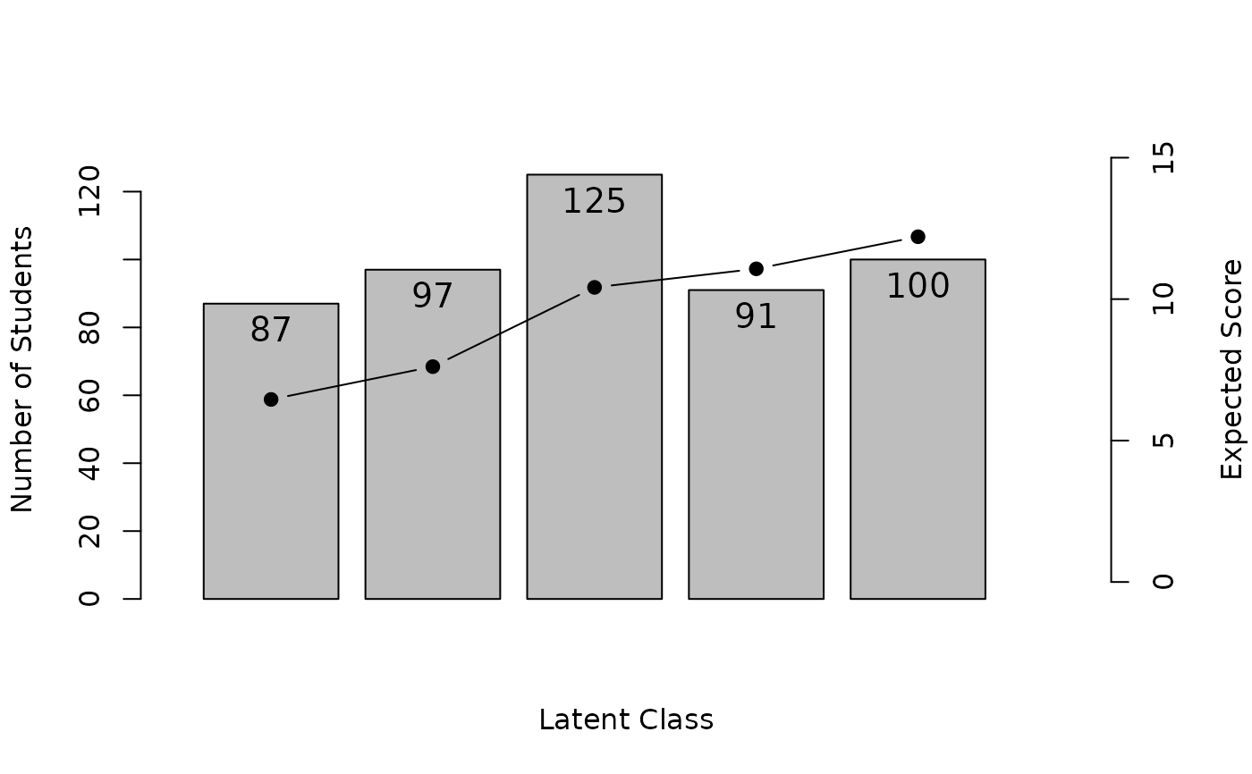 Latent Class Distribution vector showing the number of examinees assigned to each latent class.