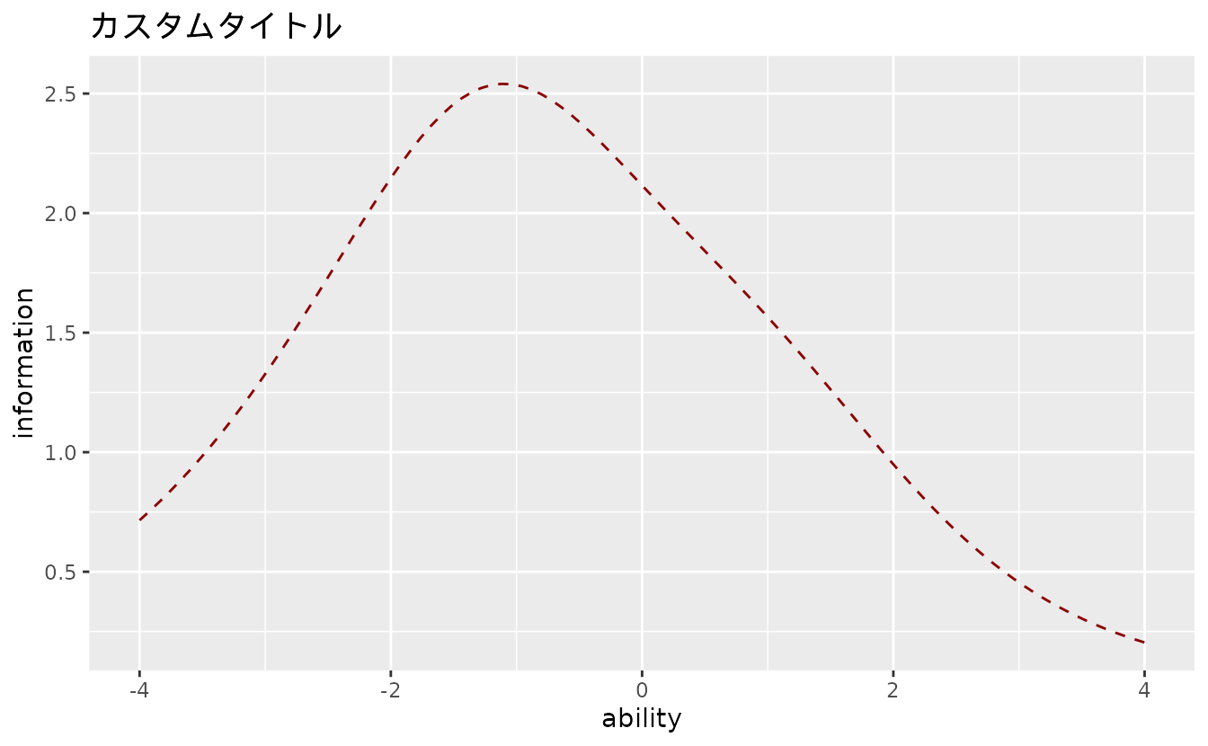 iic_plots <- plotIIC_gg(result_irt, items = c(1, 3, 5))plotTIC_gg: テスト情報曲線(TIC)