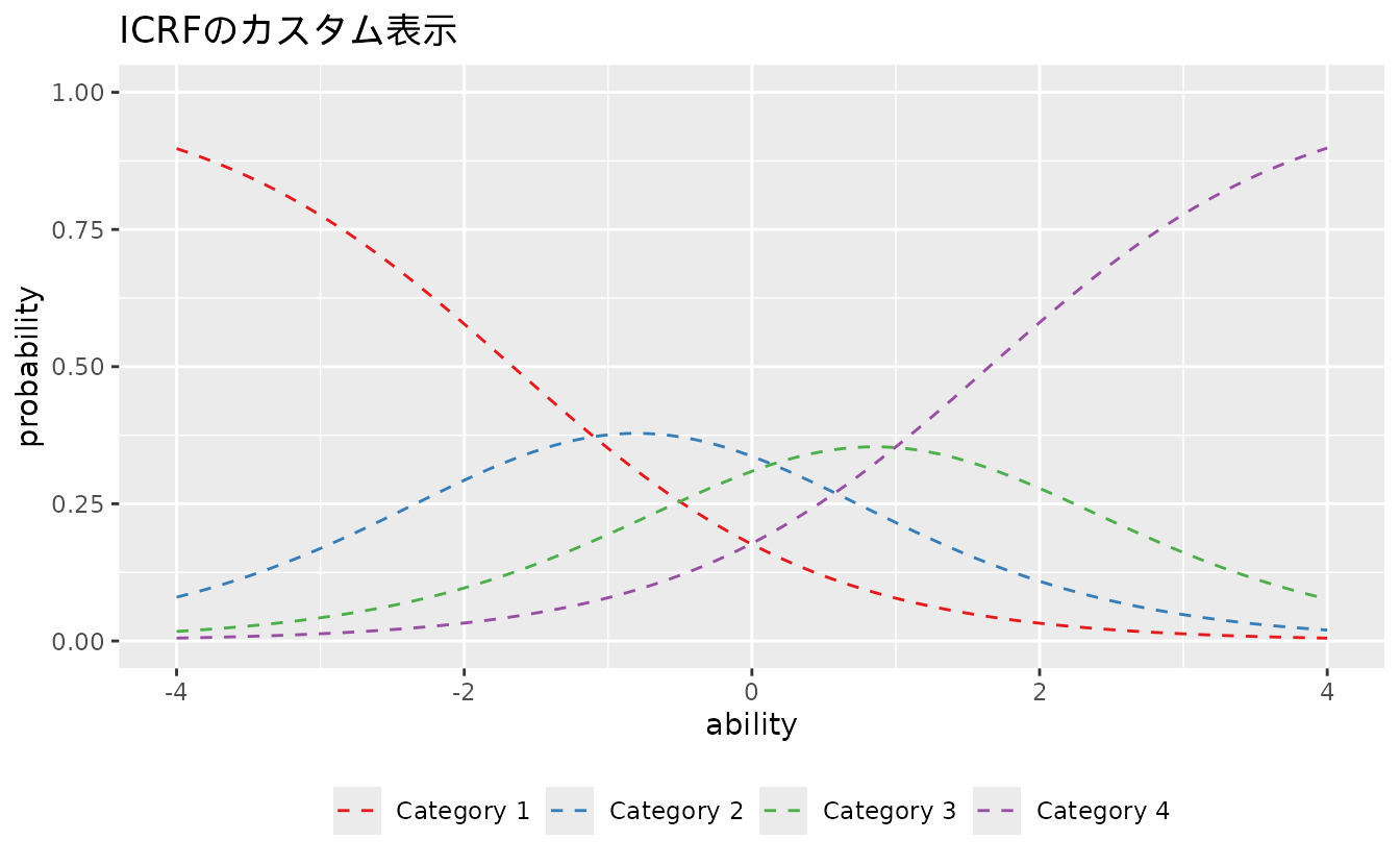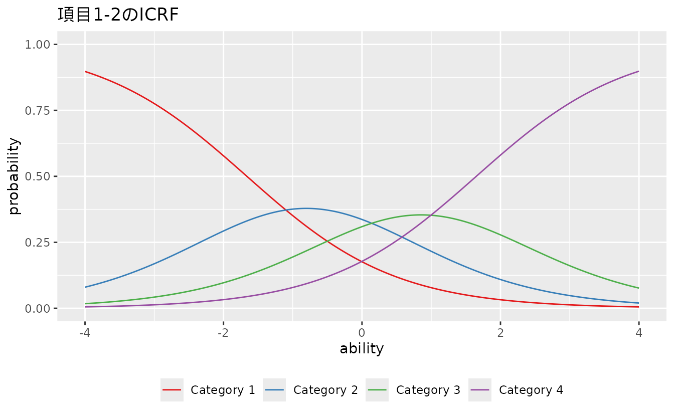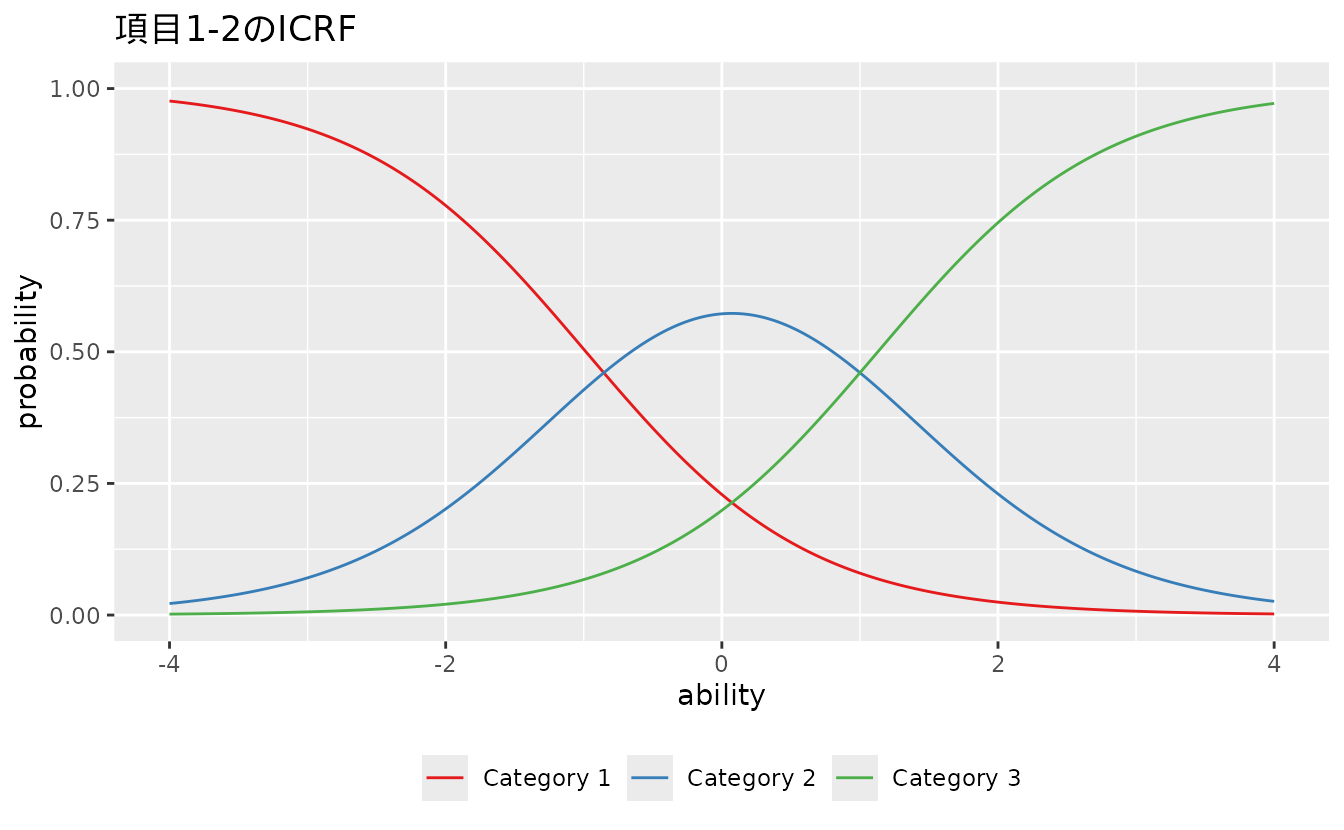 #> convergedplotICRF_gg: 項目カテゴリ応答関数(ICRF)