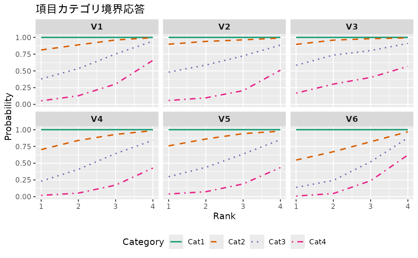 能力の関数として各応答カテゴリの選択確率を表示します。