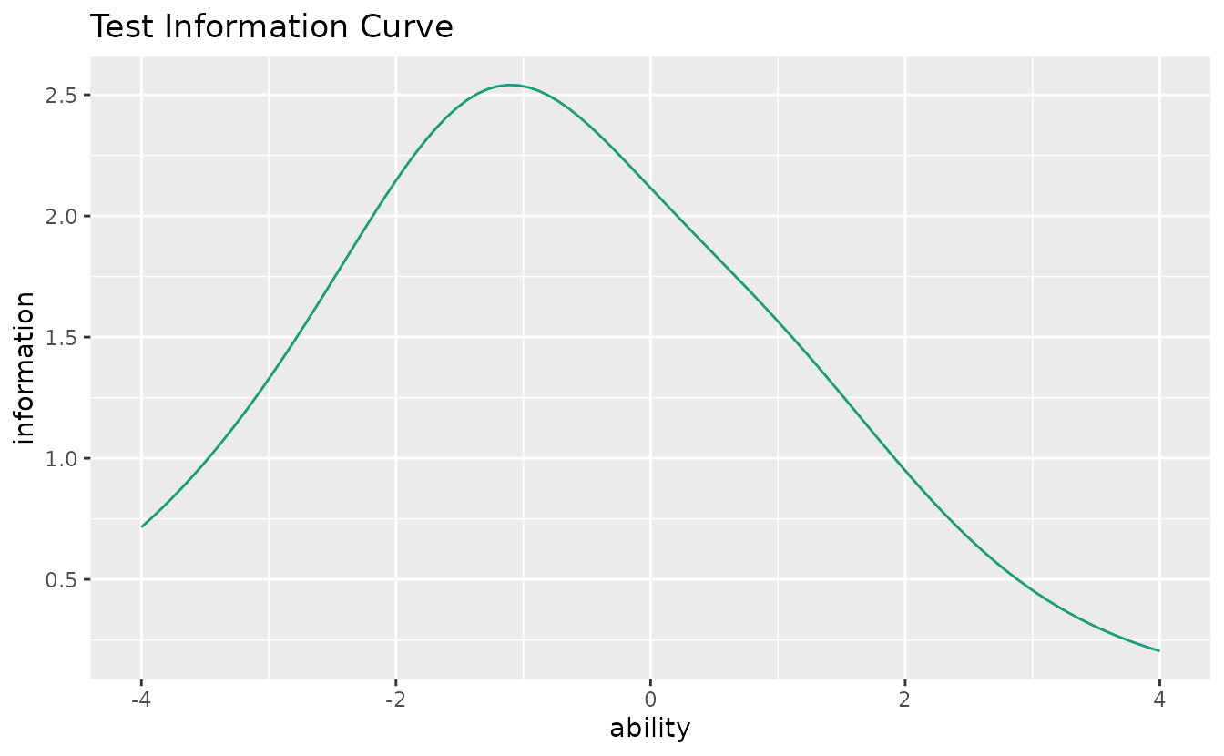 iic_plots <- plotIIC_gg(result_irt, items = c(1, 3, 5))plotTIC_gg: Test Information Curve