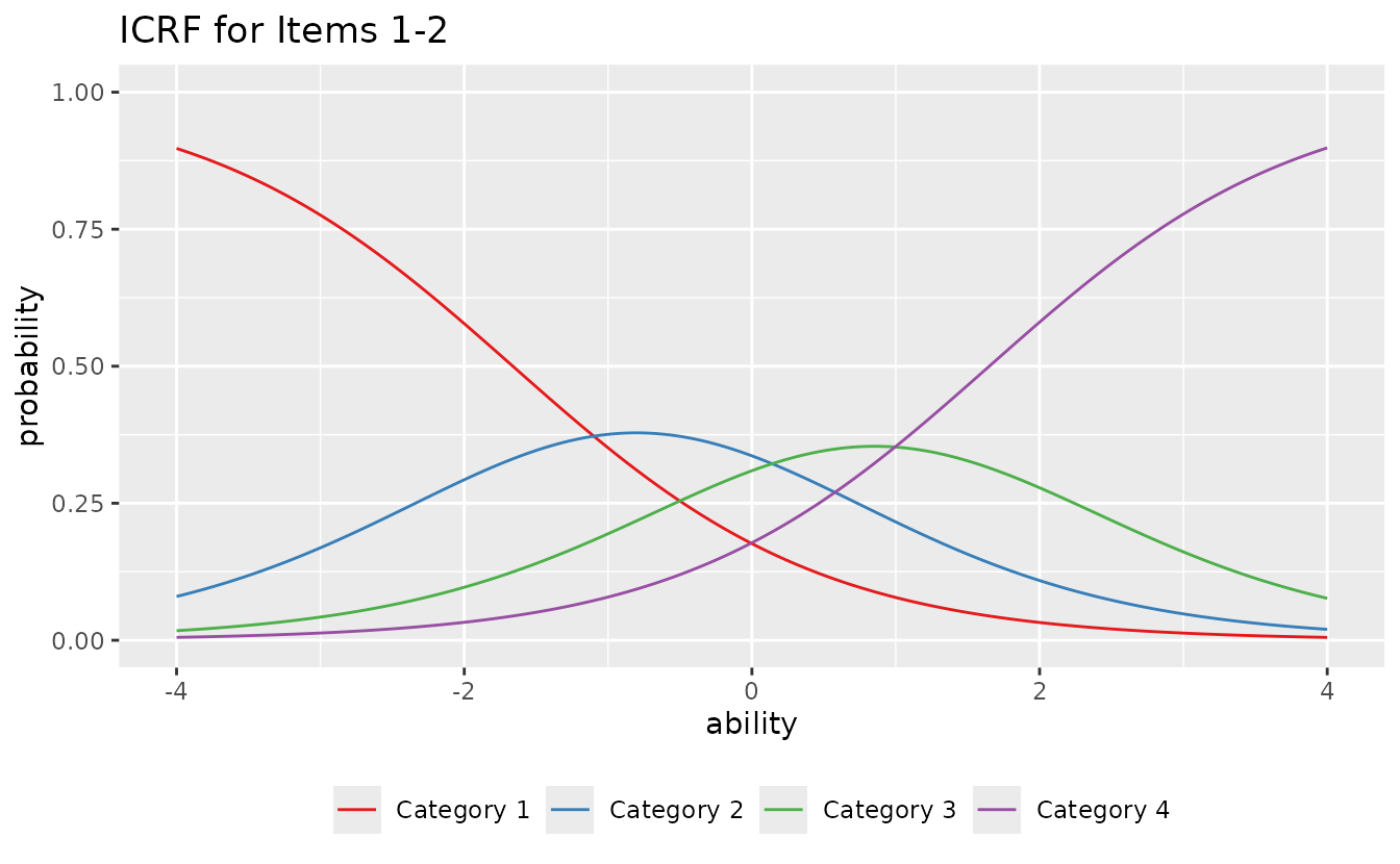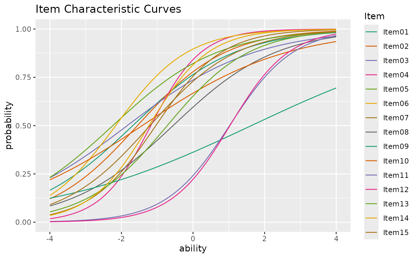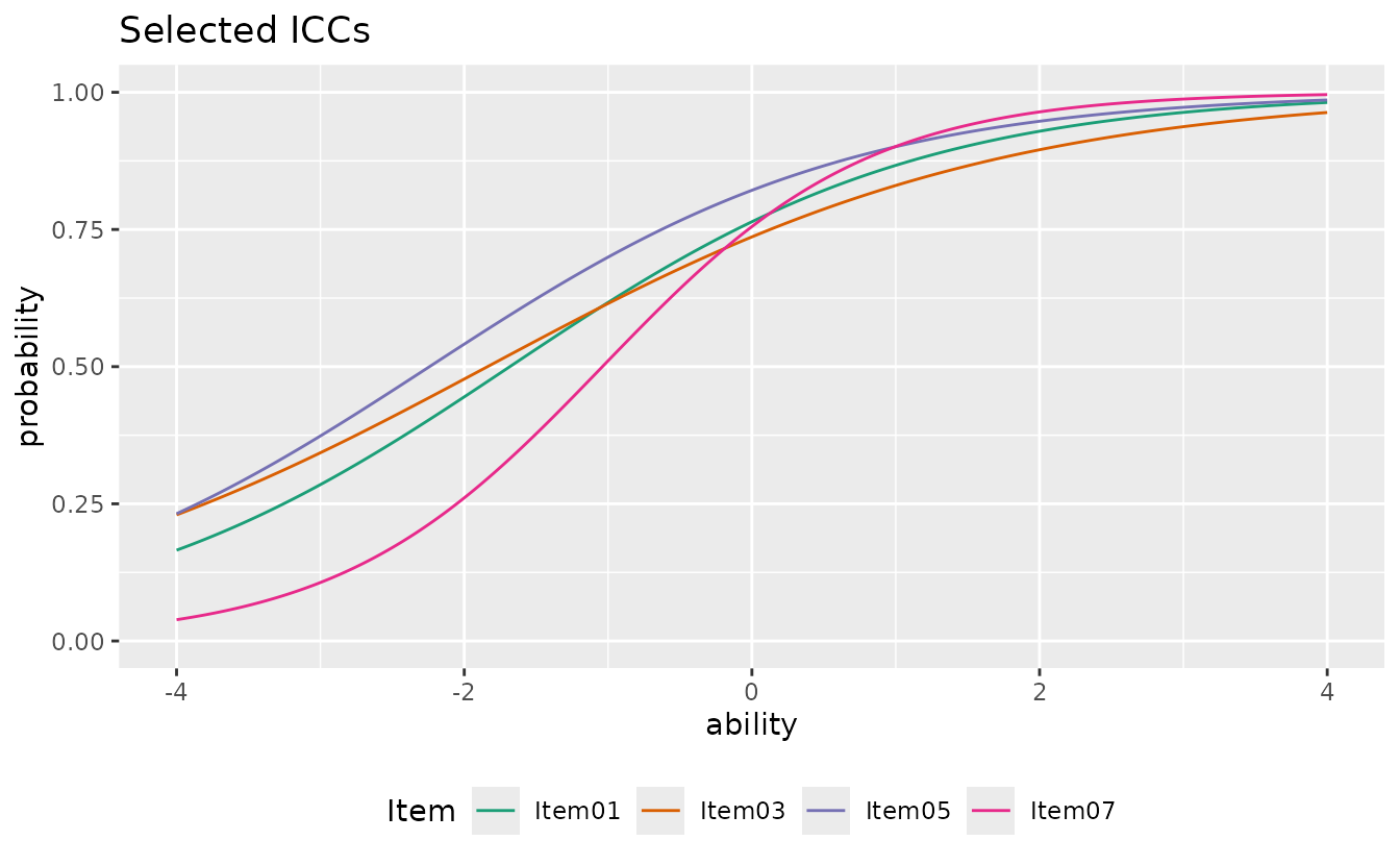 #> iter 11 LogLik -3893.03plotICC_gg: Item Characteristic Curve
