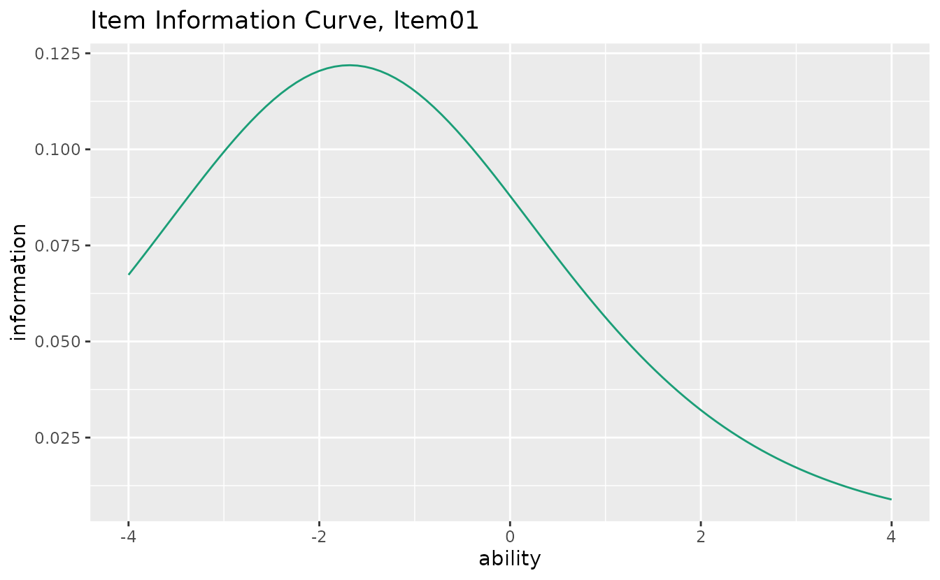 #> ItemInformationFunc, LogisticModel1. IRT (Item Response Theory)