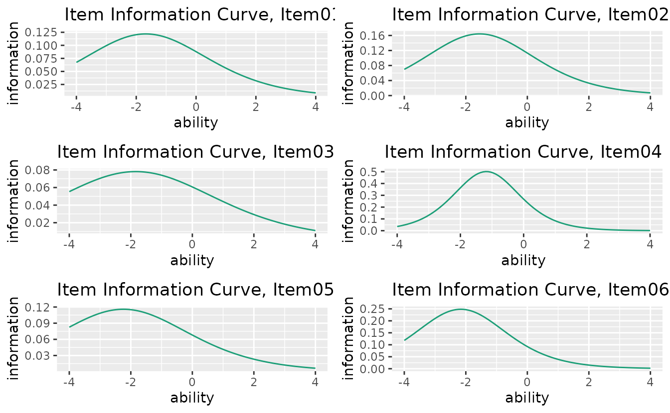 icc_plots <- plotICC_gg(result_irt, xvariable = c(-3, 3))plotIIC_gg: Item Information Curve