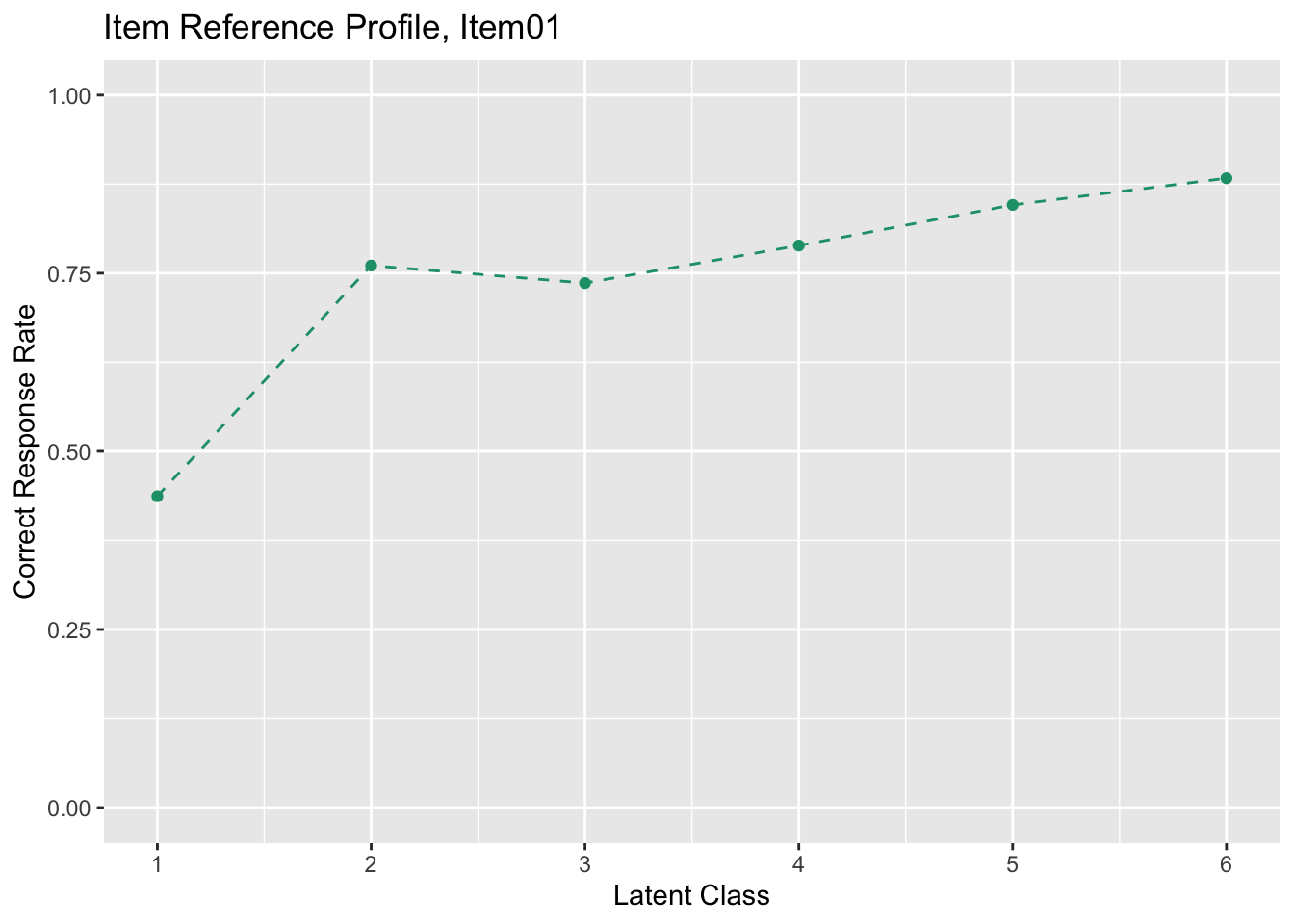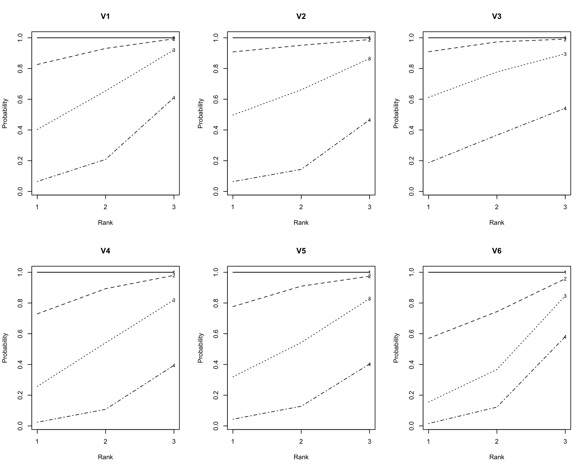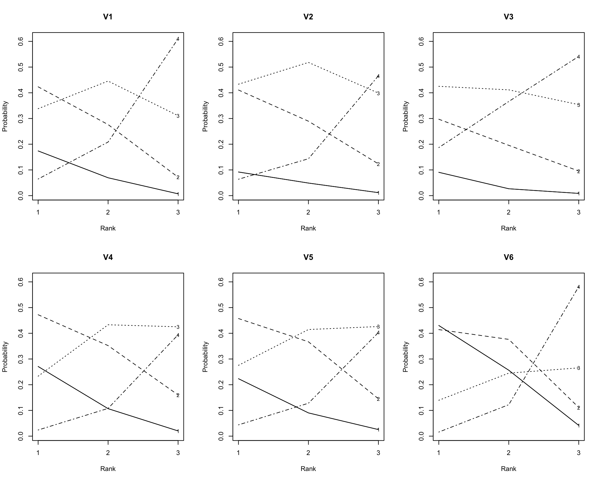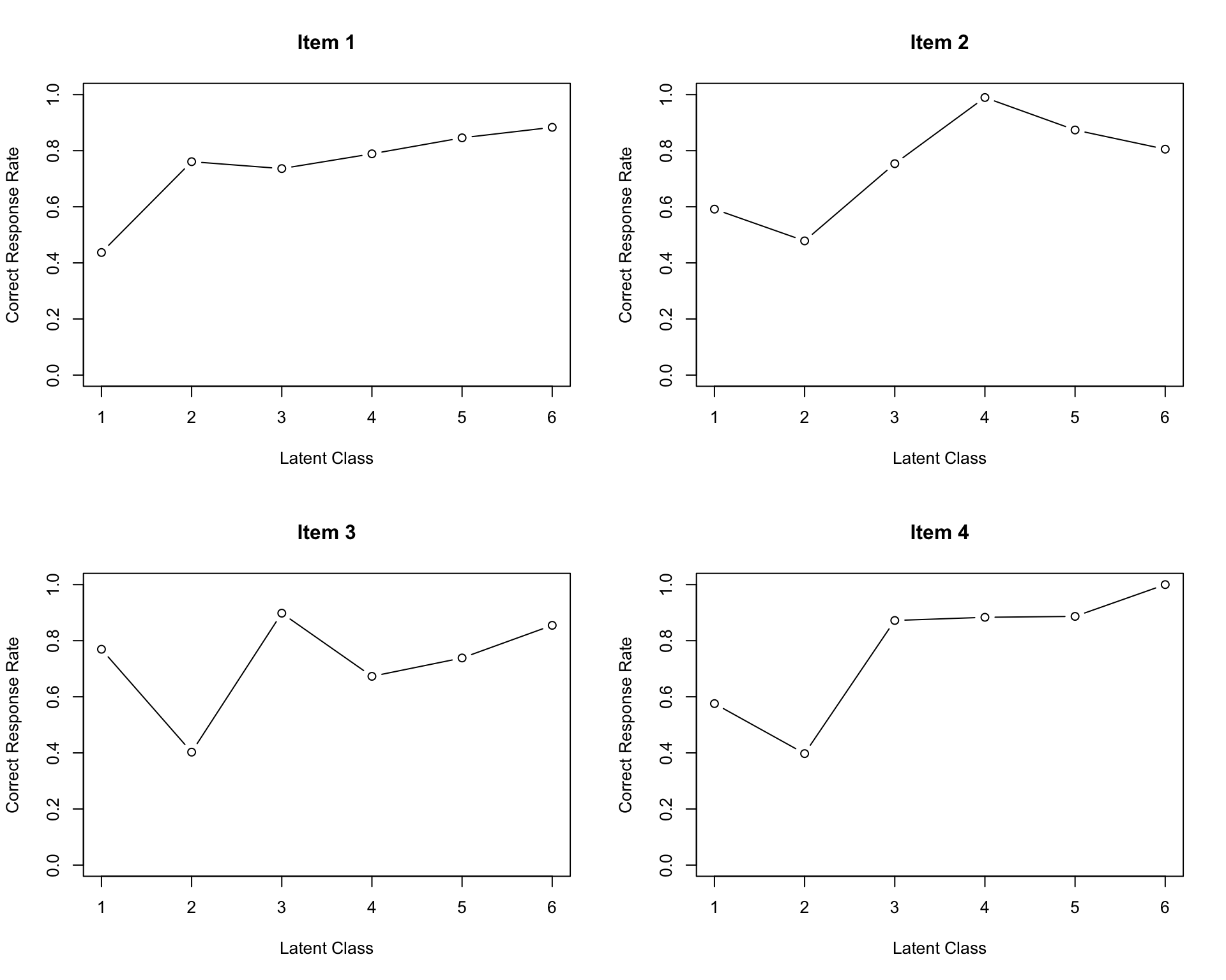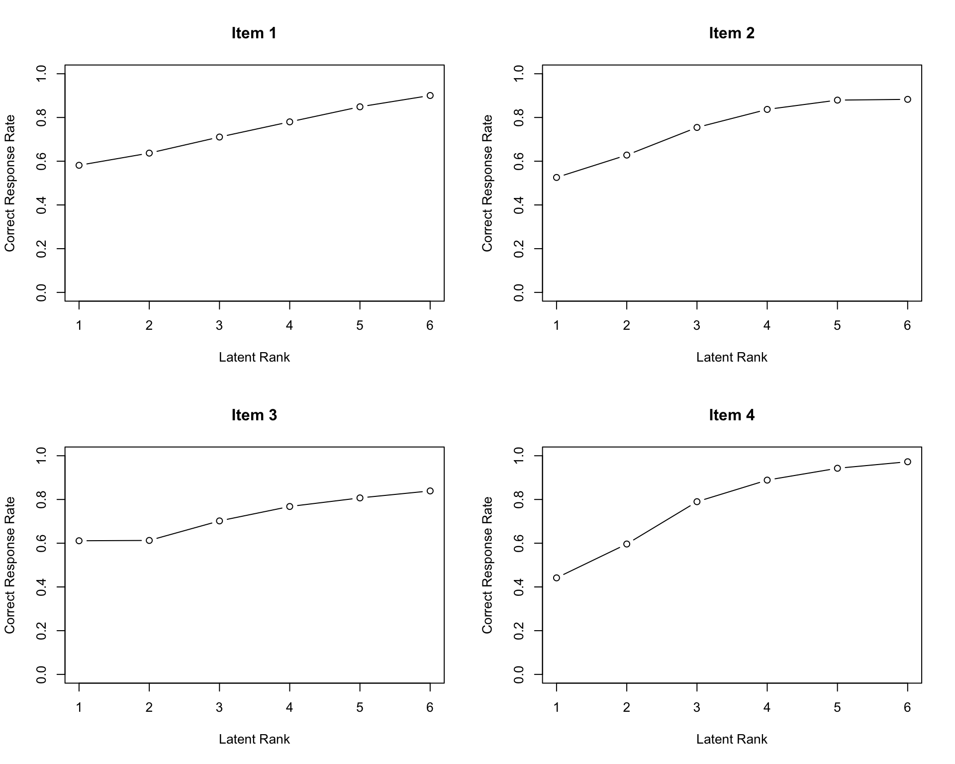plot(result.LRAord, type = "ICRP", items = 1:6, nc = 3, nr = 2)