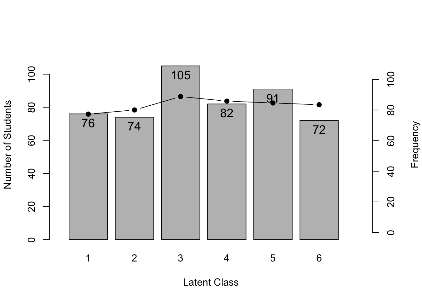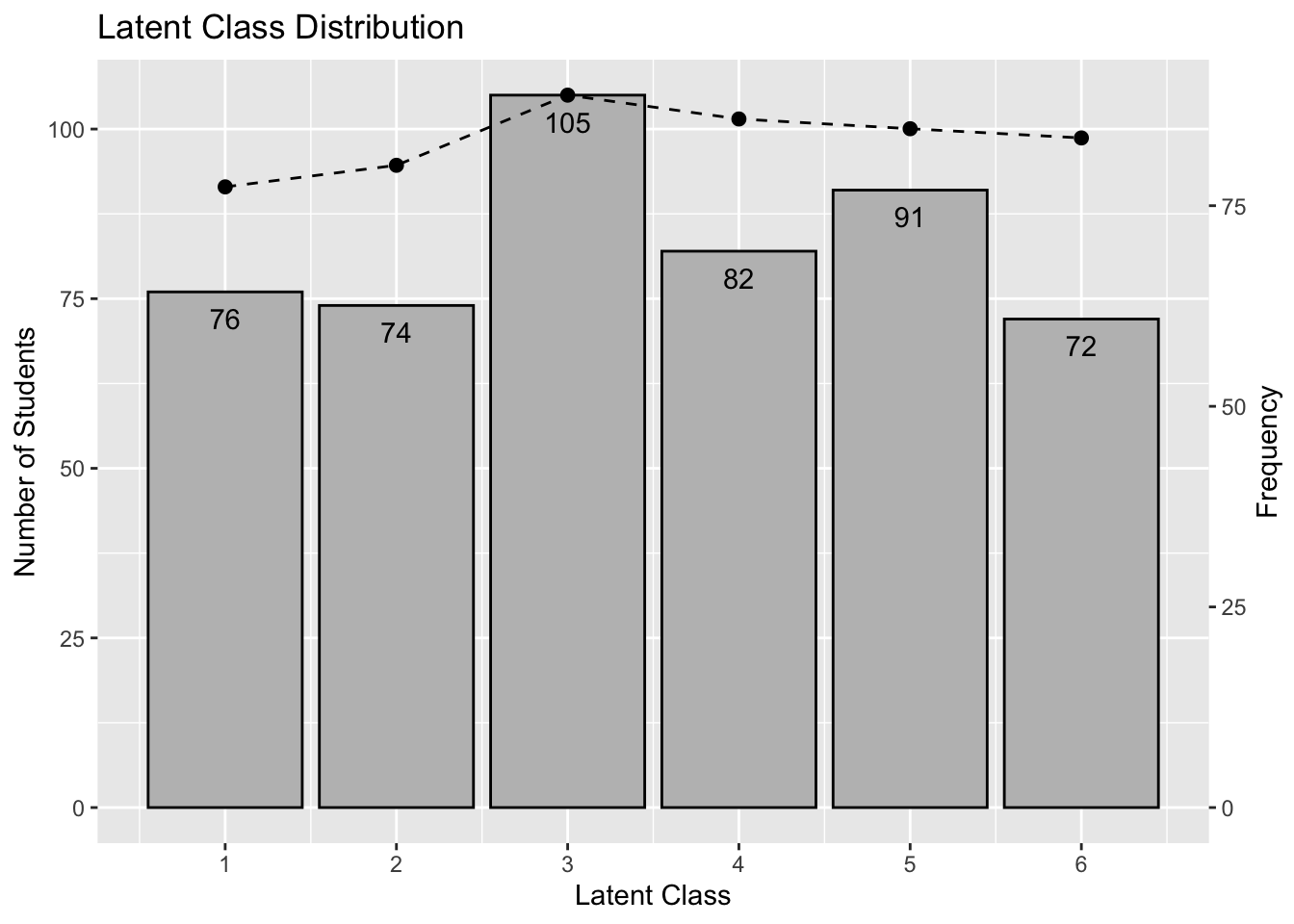 Latent Class Ditribution 76.000 74.000 105.000 82.000 91.000 72.000