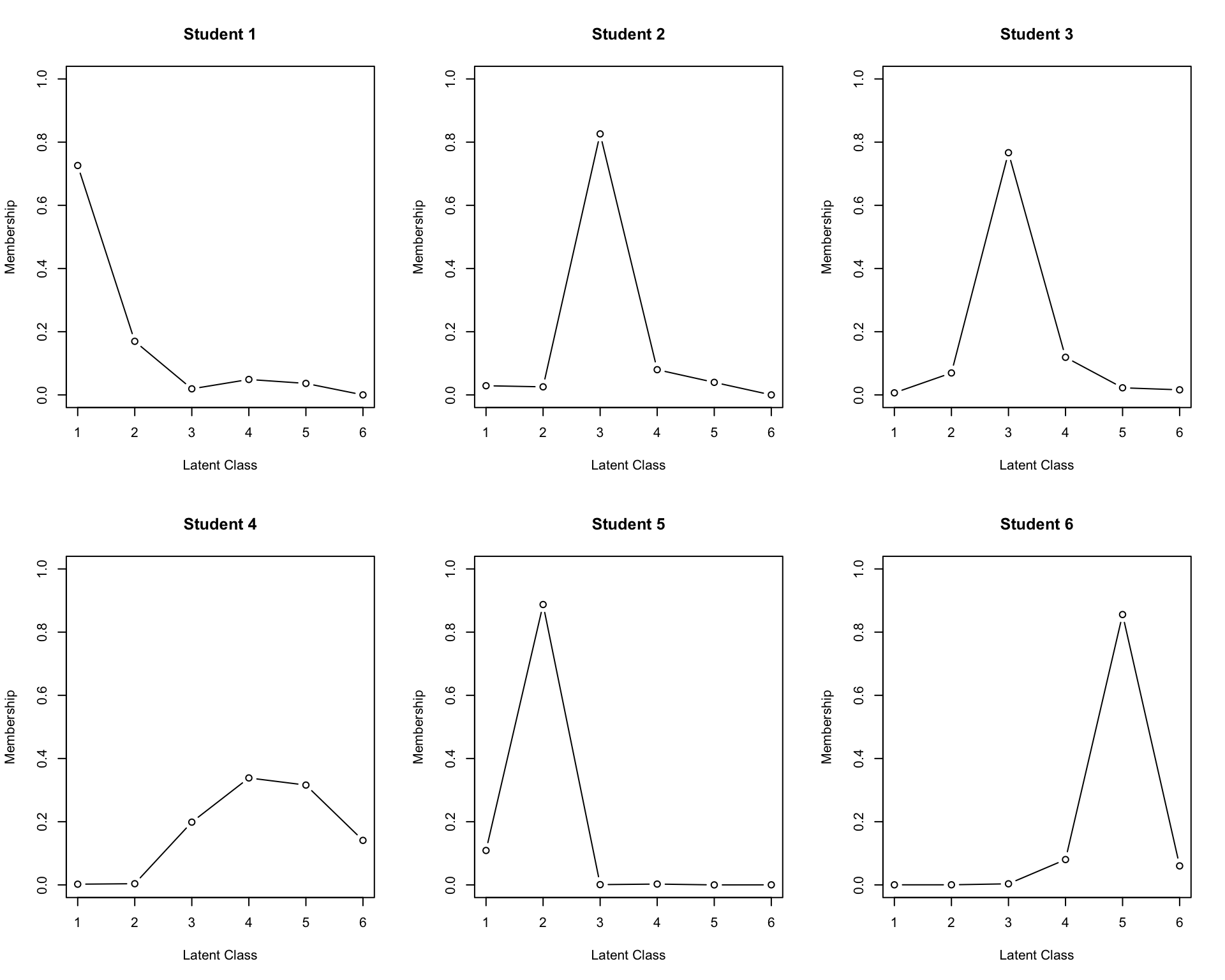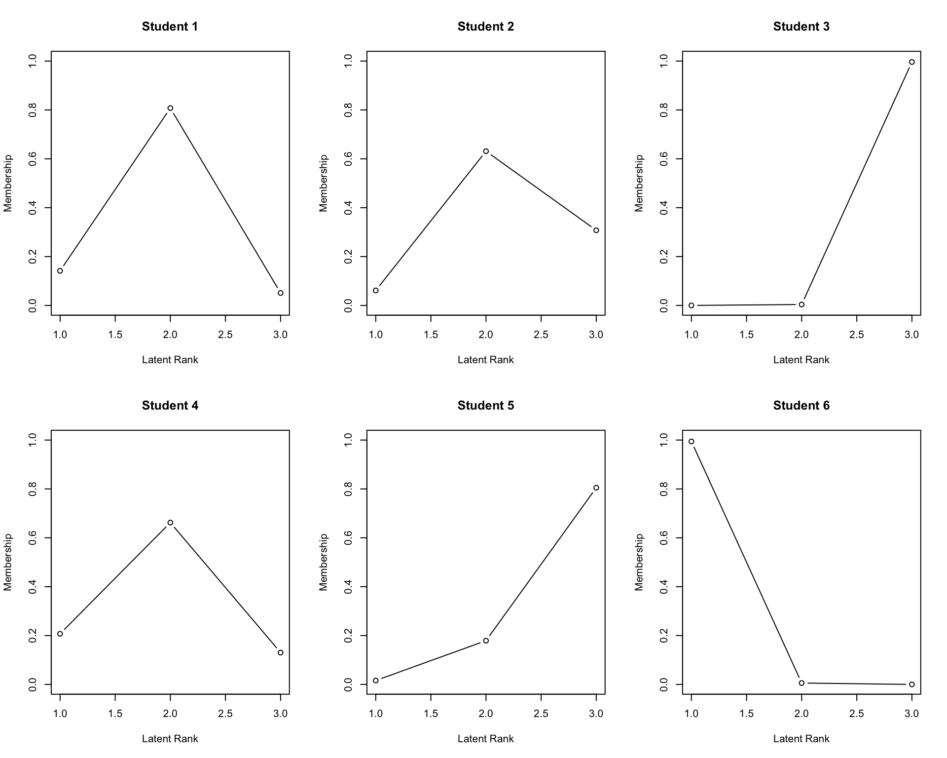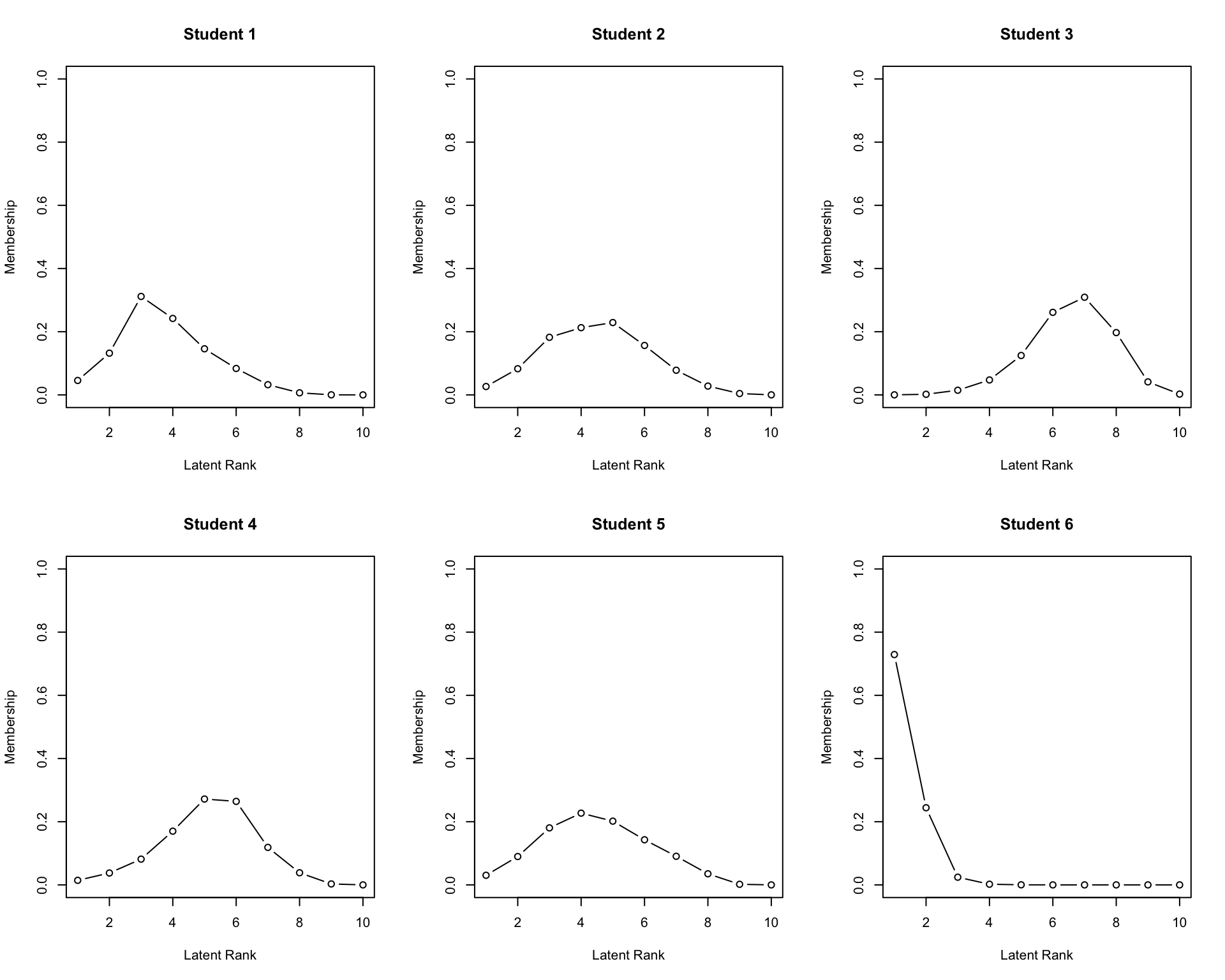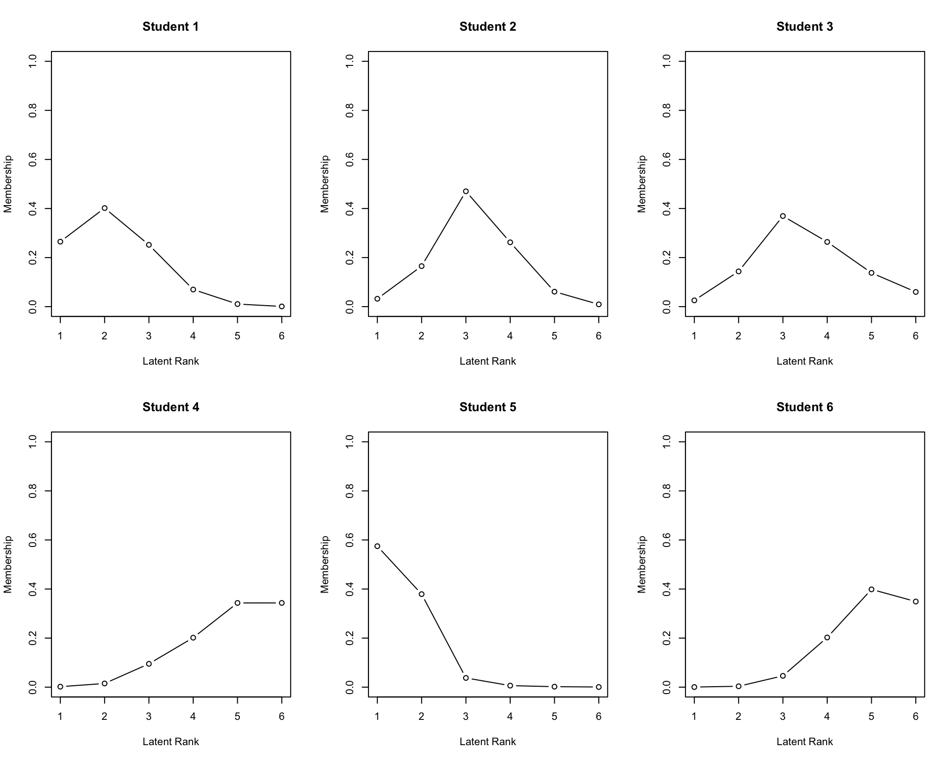 plot(result.LRAord, type = "RMP", students = 1:6, nc = 3, nr = 2)