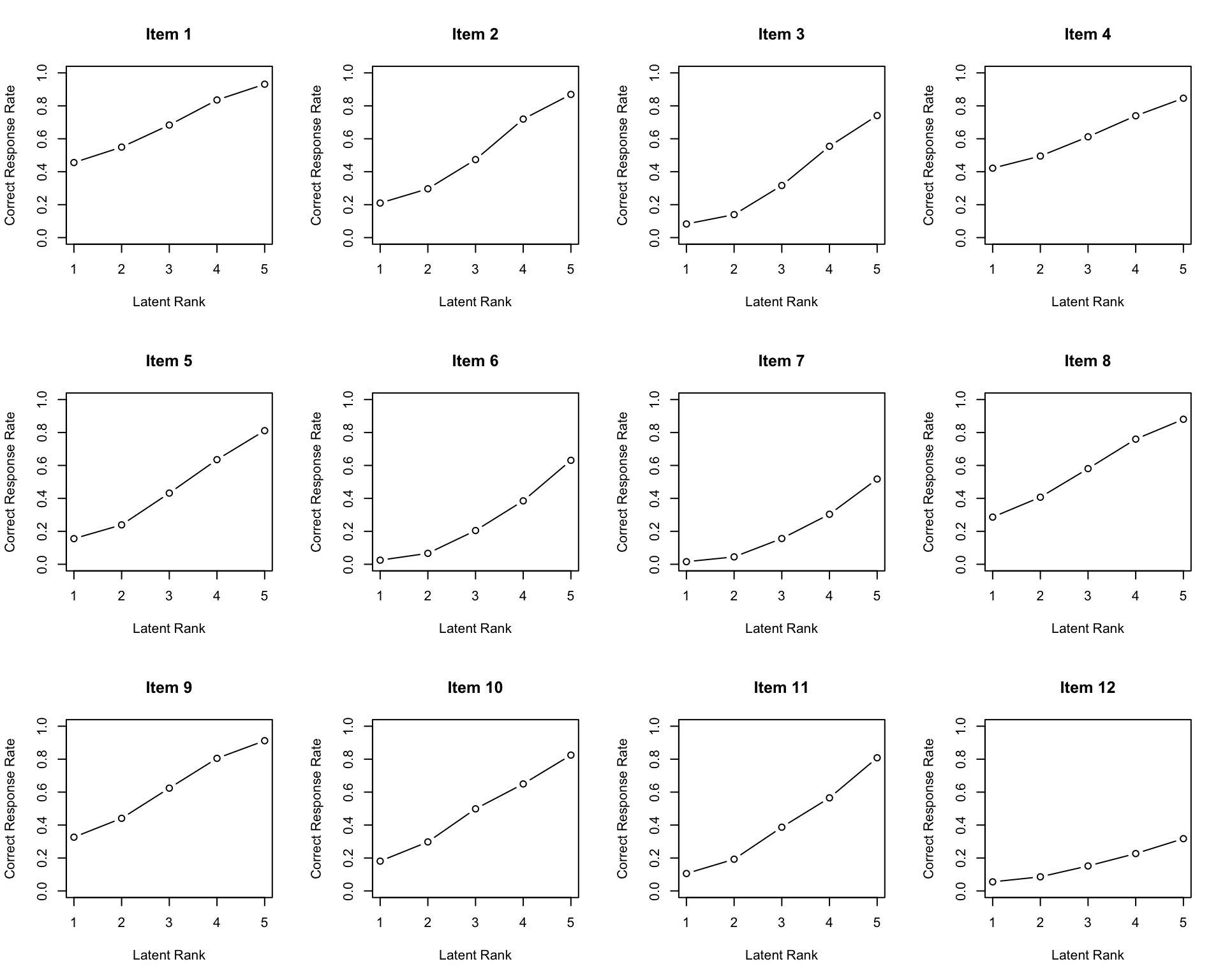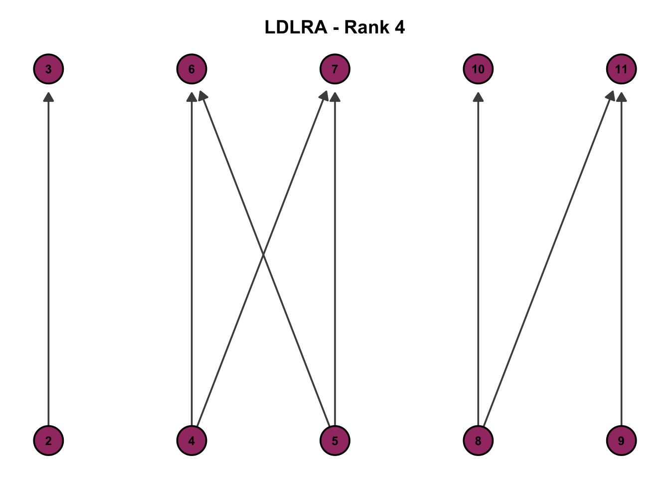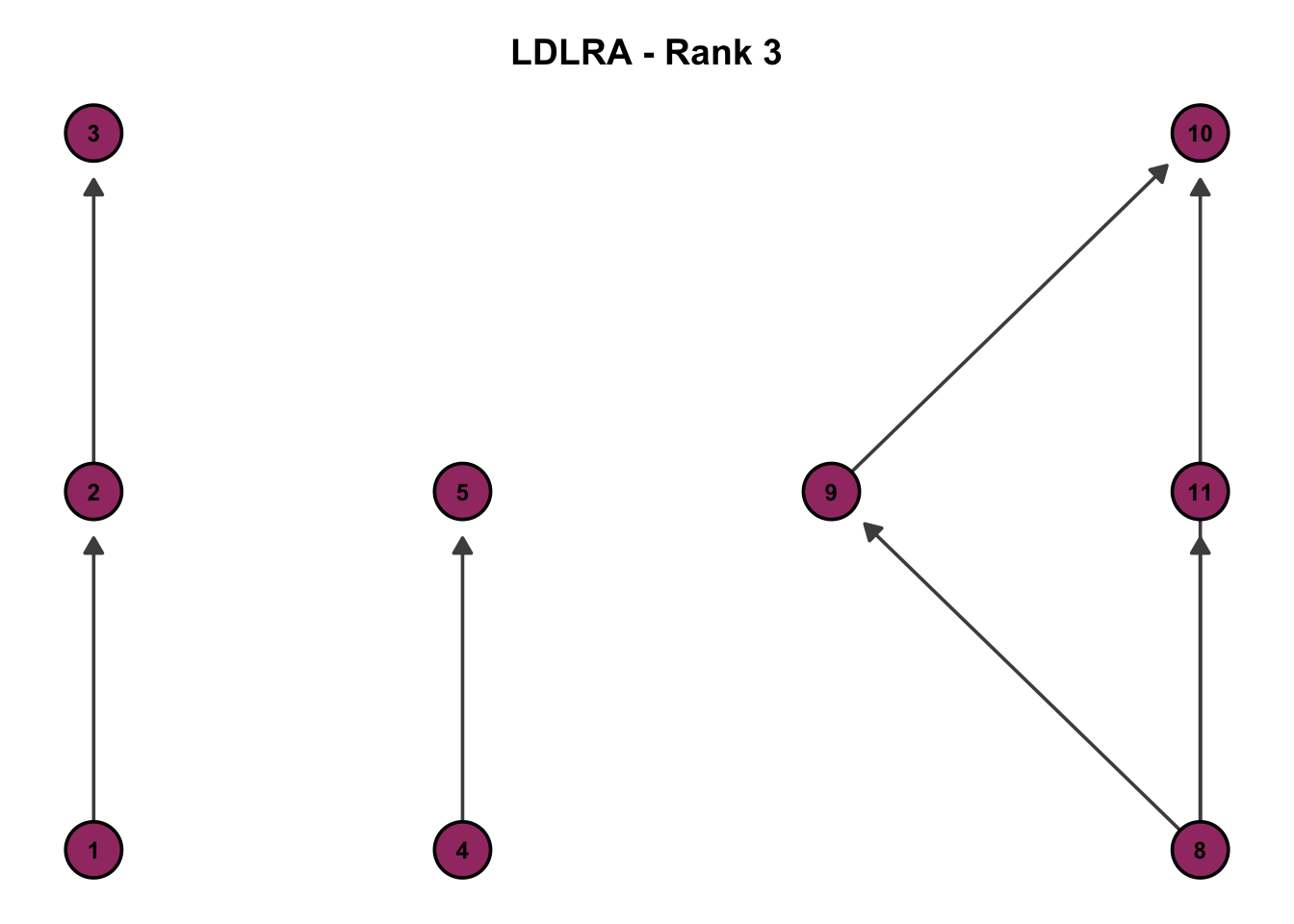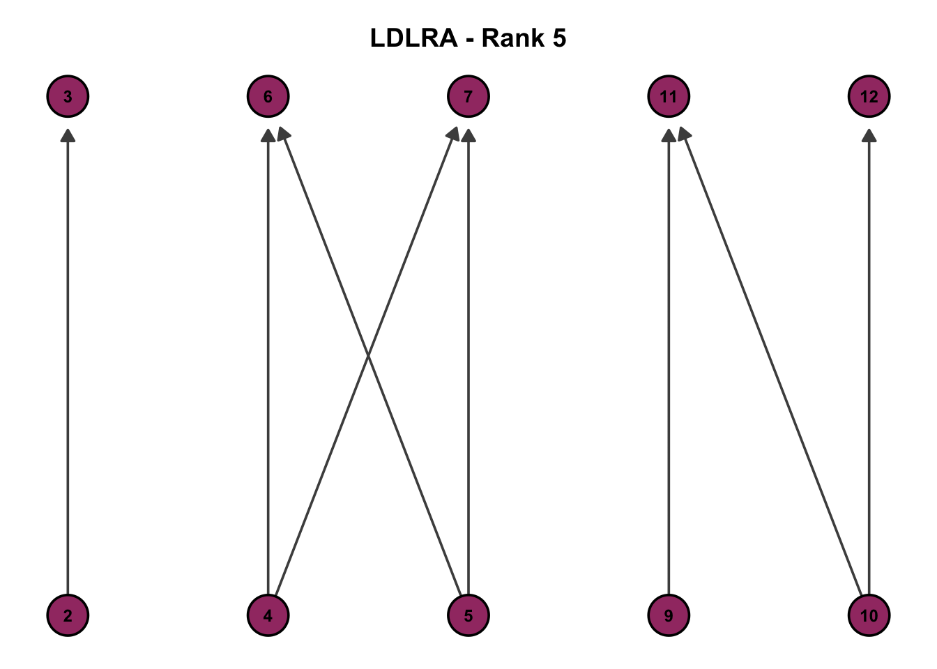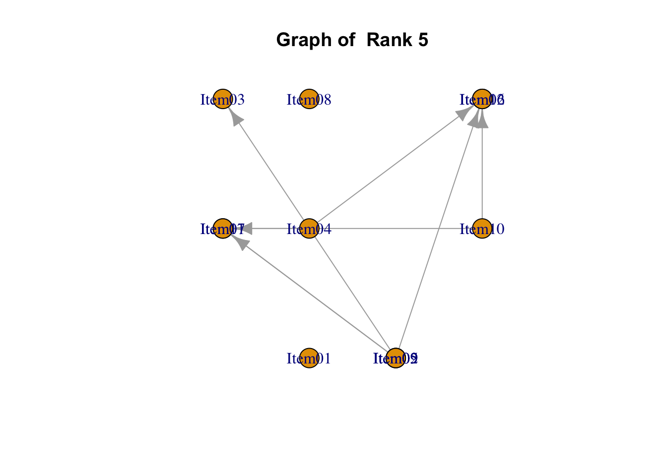 LDLRAは,LRAとBNMを組み合わせたモデルです。項目間の依存関係が異なる習熟度ランクでどのように変化するかを分析します。各ランクに異なるDAGを指定する必要があります。